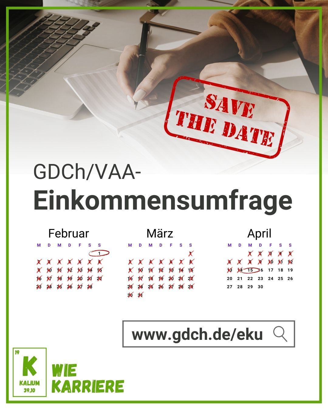 | | Gehälter in der Chemie Die alljährliche GDCh/VAA-Einkommensumfrage ist vom 1. Februar bis 15. April geöffnet. Nehmen Sie teil und sichern Sie sich die umfassende Auswertung nach Berufsjahren sowie Einblicke in die Einkommensstrukturen Ihrer Branche. GDCh-Mitglieder, die in Deutschland außerhalb des öffentlichen Dienstes arbeiten, werden Ende Januar automatisch angeschrieben. GDCh-VAA-Doppelmitglieder erhalten ihre Unterlagen vom VAA. |