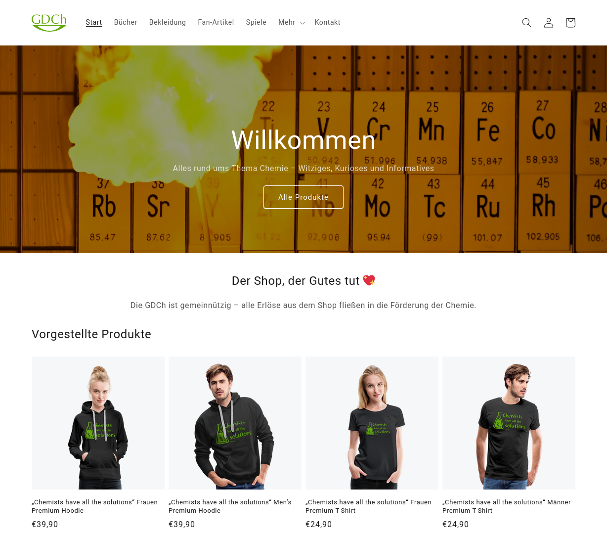 | | | | Die Osternester sind noch nicht gefüllt? 🐰 Im GDCh-Shop werden Sie bestimmt fündig. Dort gibt es alles rund ums Thema Chemie – Witziges, Kurioses und Informatives. | | |