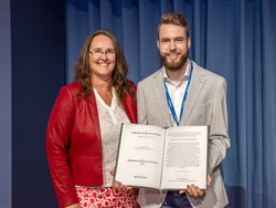 Frieda Nagler erhielt den Förderpreis für ihre herausragende Masterarbeit mit dem Titel: "Synthesis of hydrogels based on polydehydroalanine". Frau Nagler stellte neuartige Hydrogele auf Basis von Polydehydroalanin her, die zur Netzwerkbildung mit Bisepoxiden und Polyethern umgesetzt wurden. Sie untersuchte die erhaltenen Hydrogele unter anderem hinsichtlich ihres Quellungsverhaltens, ihrer mechanischen Eigenschaften und ihrer Stabilität. Hierbei handelt es sich um hochinteressante Polymersysteme mit Modellcharakter für die Untersuchung der reversiblen Aufnahme geladener Gastmoleküle und als Material für die Wasseraufbereitung.