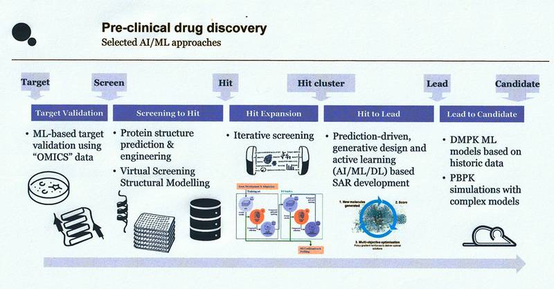 Der Einsatz künstlicher Intelligenz (KI) hat sich in der präklinischen Wirkstoffforschung zu einem zentralen technologischen und wissenschaftlichen Ansatz entwickelt. Durch die Analyse hoch-dimensionaler biologischer und chemischer Datensätze ermöglichen KI‑Methoden eine signifikante Beschleunigung und Präzisierung früher Entwicklungsphasen. Verschiedenste KI-basierte Ansätze tragen dazu bei, komplexe molekulare Zusammenhänge zu erfassen und experimentelle Entscheidungsprozesse datengetrieben zu unterstützen. Die zunehmende Integration und Verbesserung von multimodaler Datenquellen sowie Fortschritte in KI-Ansätzen werden die präklinische Forschung weiter transformieren.