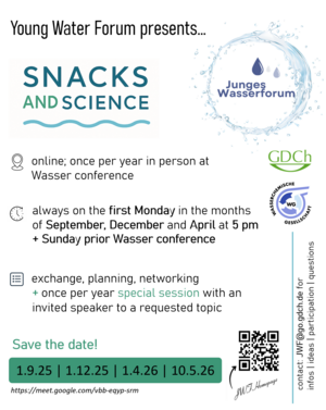 Wer kann sich anmelden: Prinzipiell jede Person, die denkt, dass sie von dem Austausch profitiert. Eine Altersgrenze gibt es nicht. Wenn ihr euch unsicher seid, kommt einfach vorbei und probiert es aus. Voraussetzung für die Teilnahme an der Veranstaltung ist die Mitgliedschaft in der Wasserchemischen Gesellschaft. Kleiner Tipp: für studierende und promovierende GDCh-Mitglieder ist die Mitgliedschaft kostenlos.