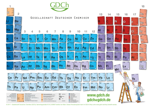 Pins, Poster, Pads – Mousepads – hier finden Sie Artikel, die Sie als echter Fan der GDCh und der Chemie ausweisen. Unser Periodensystem wurde erweitert um Nh, Mc, Ts und Og.